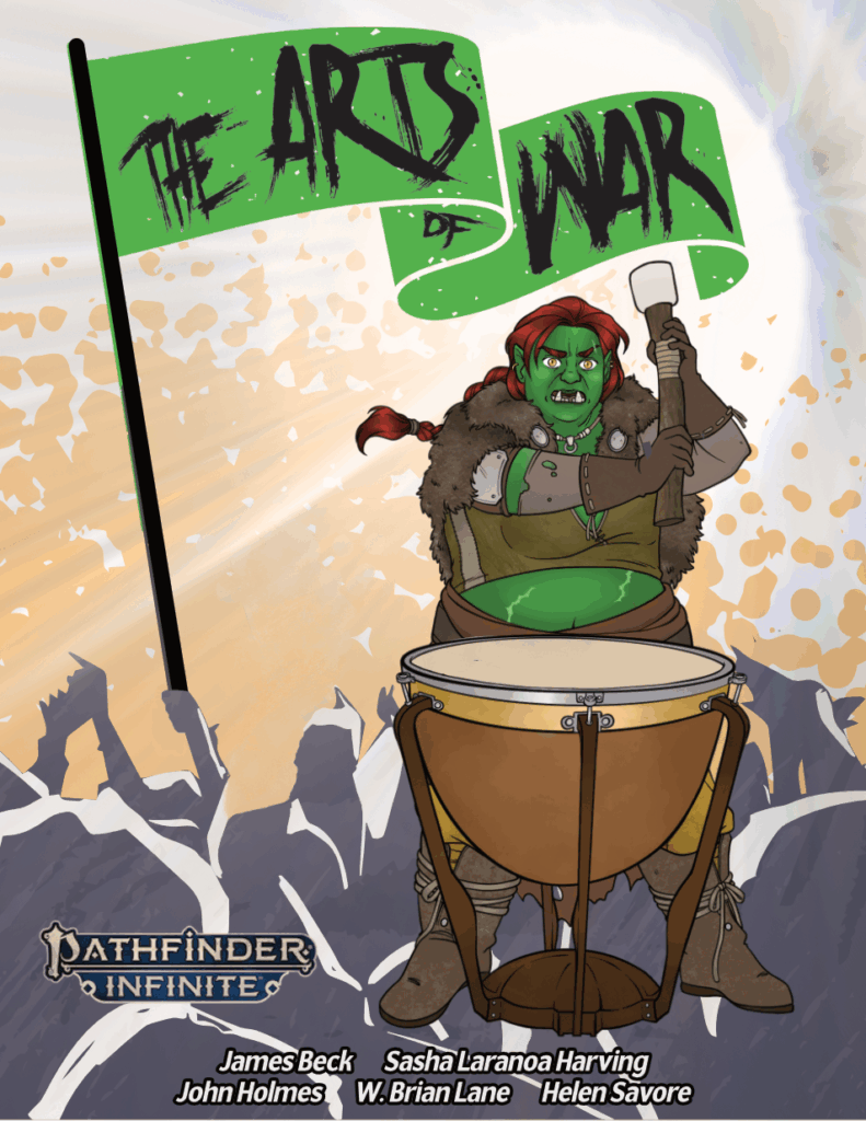 Brings things like bombastic sounds, flying banners, setting the scenes, marching in step, theatrical allies, armored gowns, scripts, pit crew, and dancing troops. Containing 42 feats, 15 items, 8 class abilities, and 4 spells. Including Foundry and Pathbuilder support.